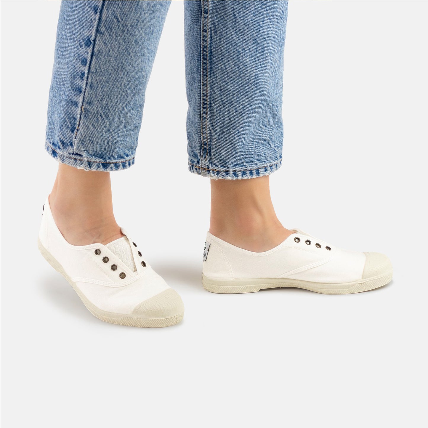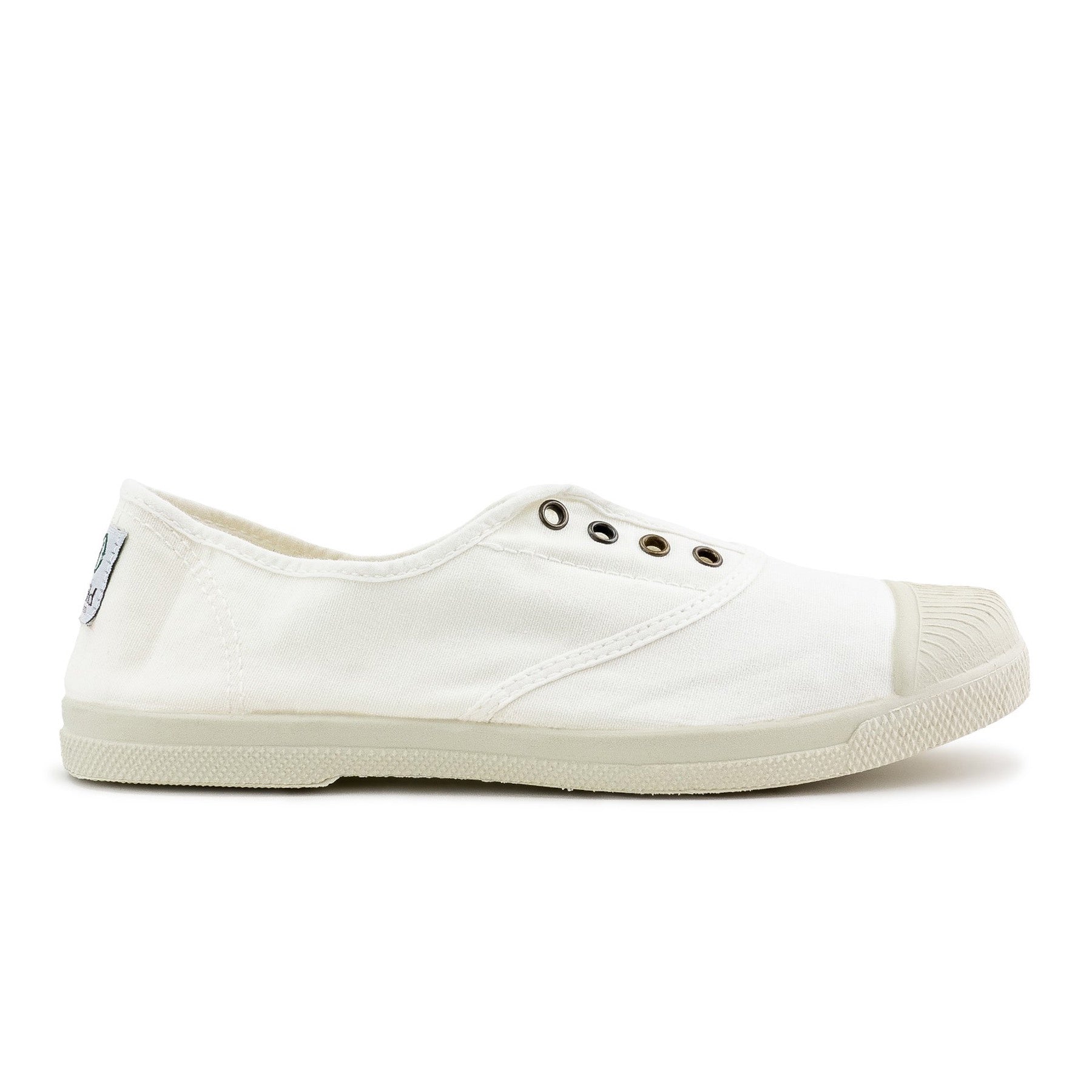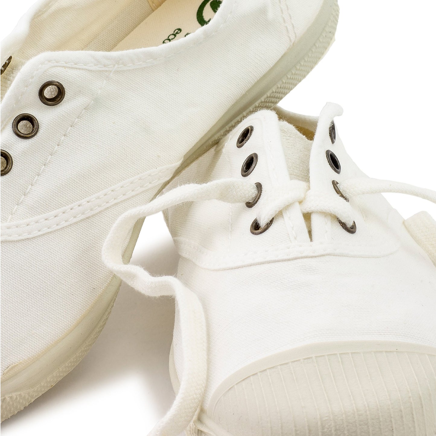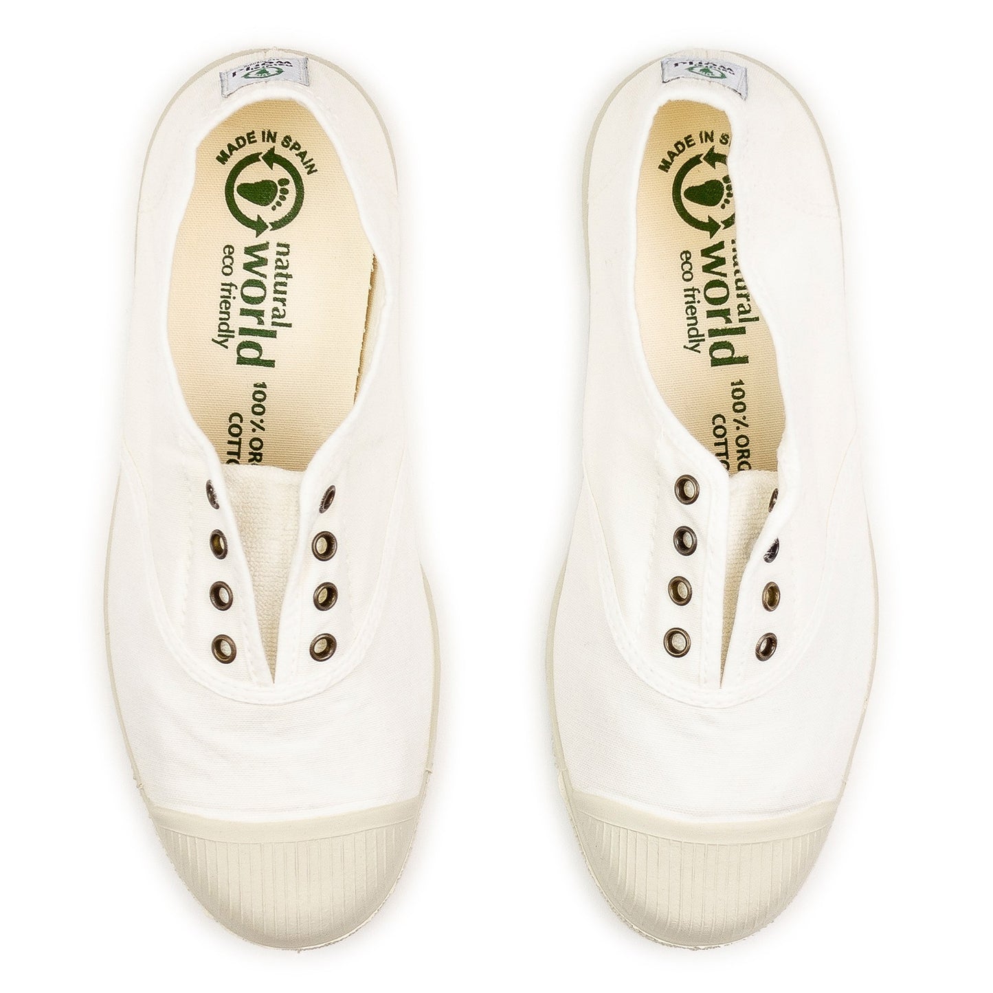 Natural World brings you the perfect blend of style, comfort, and sustainability with these classic slip-on shoes in white (Blanco). Made from 100% organic cotton and natural rubber, these shoes prioritize both the environment and your comfort. Featuring a timeless, minimalist design with metal eyelets and a durable rubber toe cap, they are ideal for everyday wear. Produced using traditional vulcanization processes, these shoes are vegan, eco-friendly, and ethically made in Spain, offering you a chic, conscious choice for any occasion.