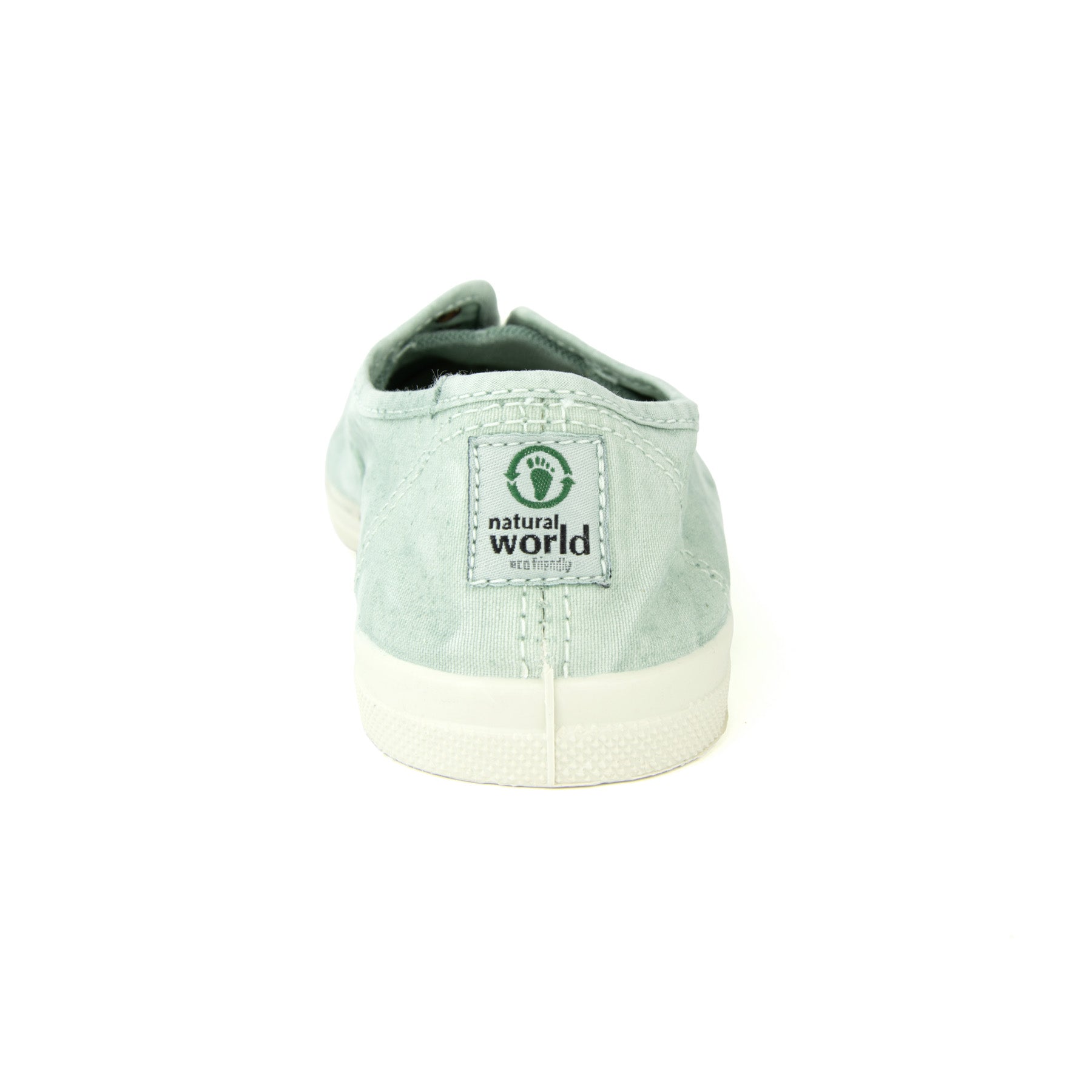 Natural World brings you the perfect blend of style, comfort, and sustainability with these classic stonewashed slip-on shoes in aqua. Made from 100% organic cotton and natural rubber, these shoes prioritize both the environment and your comfort. Featuring a timeless, minimalist design with metal eyelets and a durable rubber toe cap, they are ideal for everyday wear. Produced using traditional vulcanization processes, these shoes are vegan, eco-friendly, and ethically made in Spain, offering you a chic, conscious choice for any occasion.