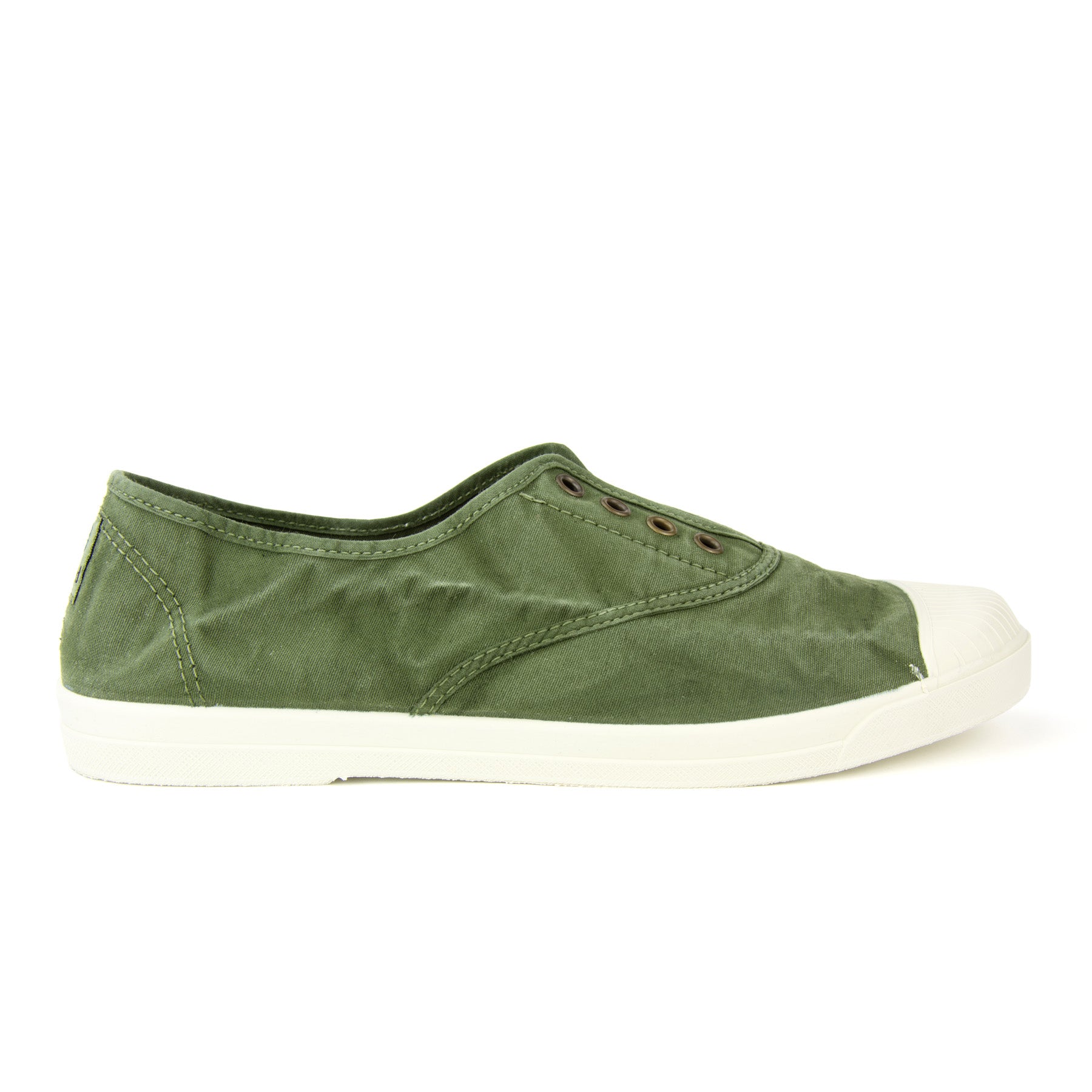 Natural World brings you the perfect blend of style, comfort, and sustainability with these classic men's stonewashed slip-on shoes in green (Kaki Enzimatico). Made from 100% organic cotton and natural rubber, these shoes prioritize both the environment and your comfort. Featuring a timeless, minimalist design with metal eyelets and a durable rubber toe cap, they are ideal for everyday wear. Produced using traditional vulcanization processes, these shoes are vegan, eco-friendly, and ethically made in Spain, offering you a chic, conscious choice for any occasion.