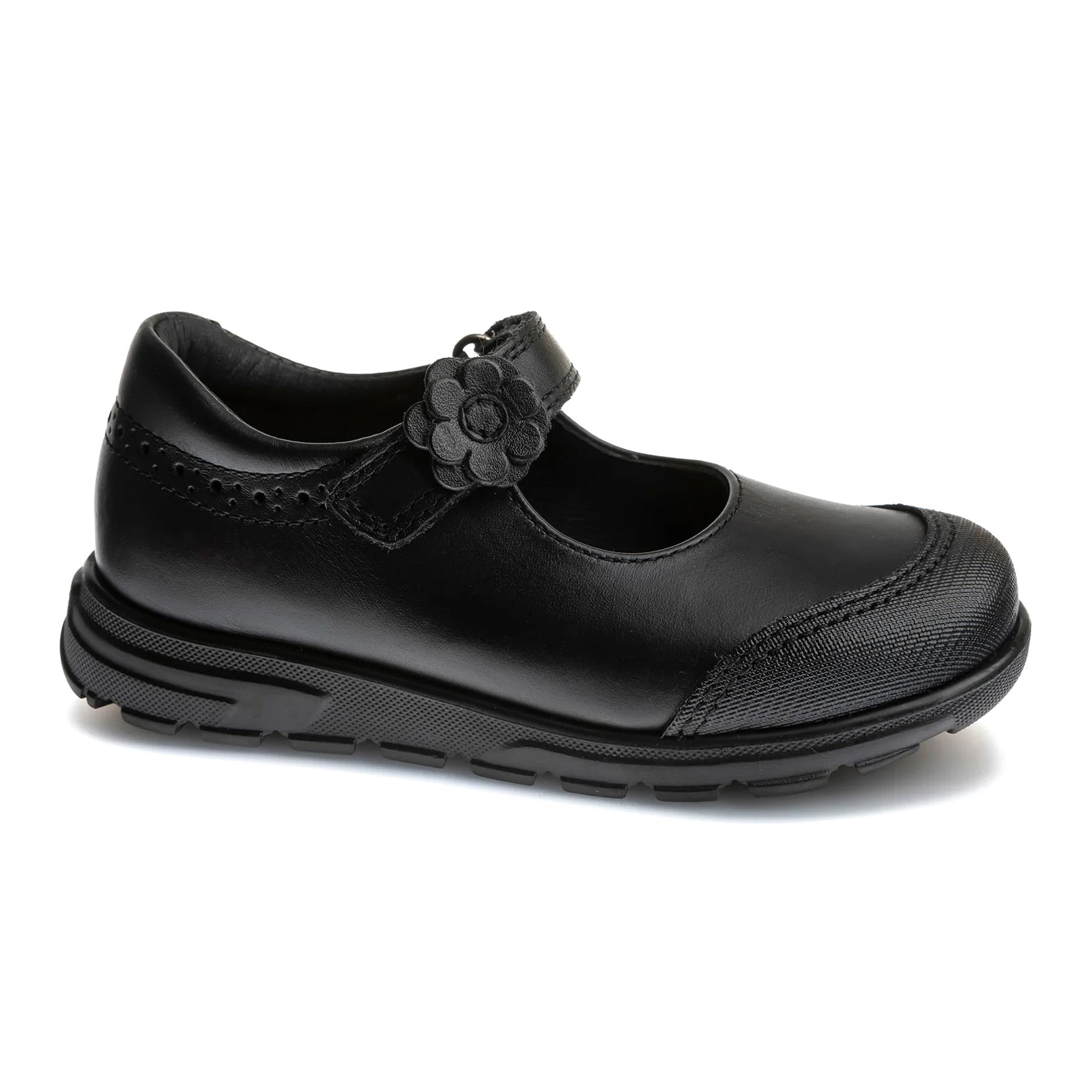 Pablosky girls’ black school shoes bring a touch of charm to a classic Mary Jane silhouette with a delicate flower detail on the strap. Made in Spain from premium natural leather, they offer excellent breathability and durability for everyday school wear. The seamless InTech lining keeps feet dry and comfortable, while the superabsorbent and antibacterial insole provides cushioning and freshness throughout the day. A reinforced toe bumper adds extra protection for active kids. Free delivery in Singapore for orders over $79.