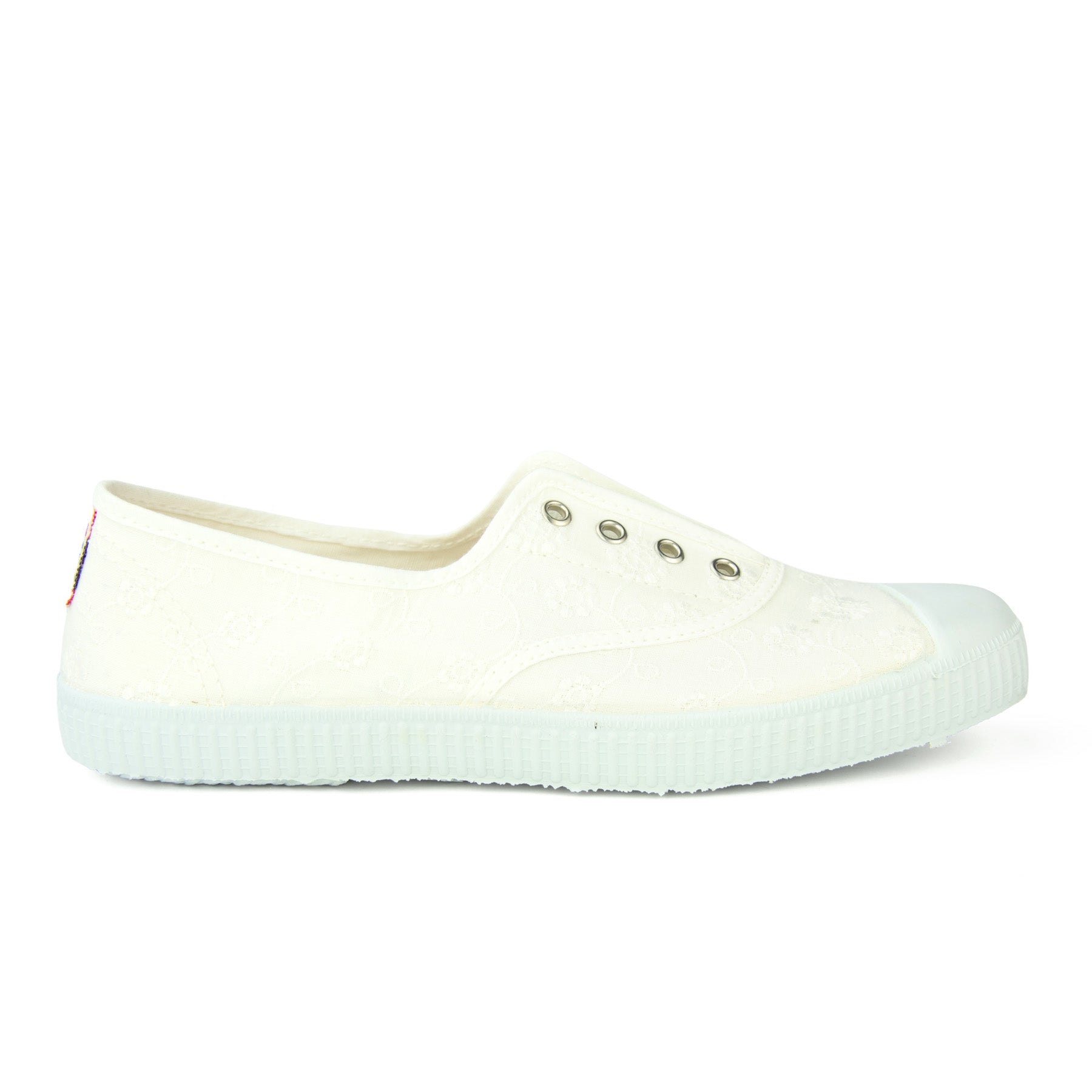 Classic girls' slip-ons from Cienta Shoes in white. Made with 100% organic cotton upper and natural rubber outsole, these shoes feature embroidered upper for classic look. Lightweight and flexible, with cushioned insole, these shoes are comfortable to wear anytime of the day. Hand or machine wash in cold water, max. 30ºC.