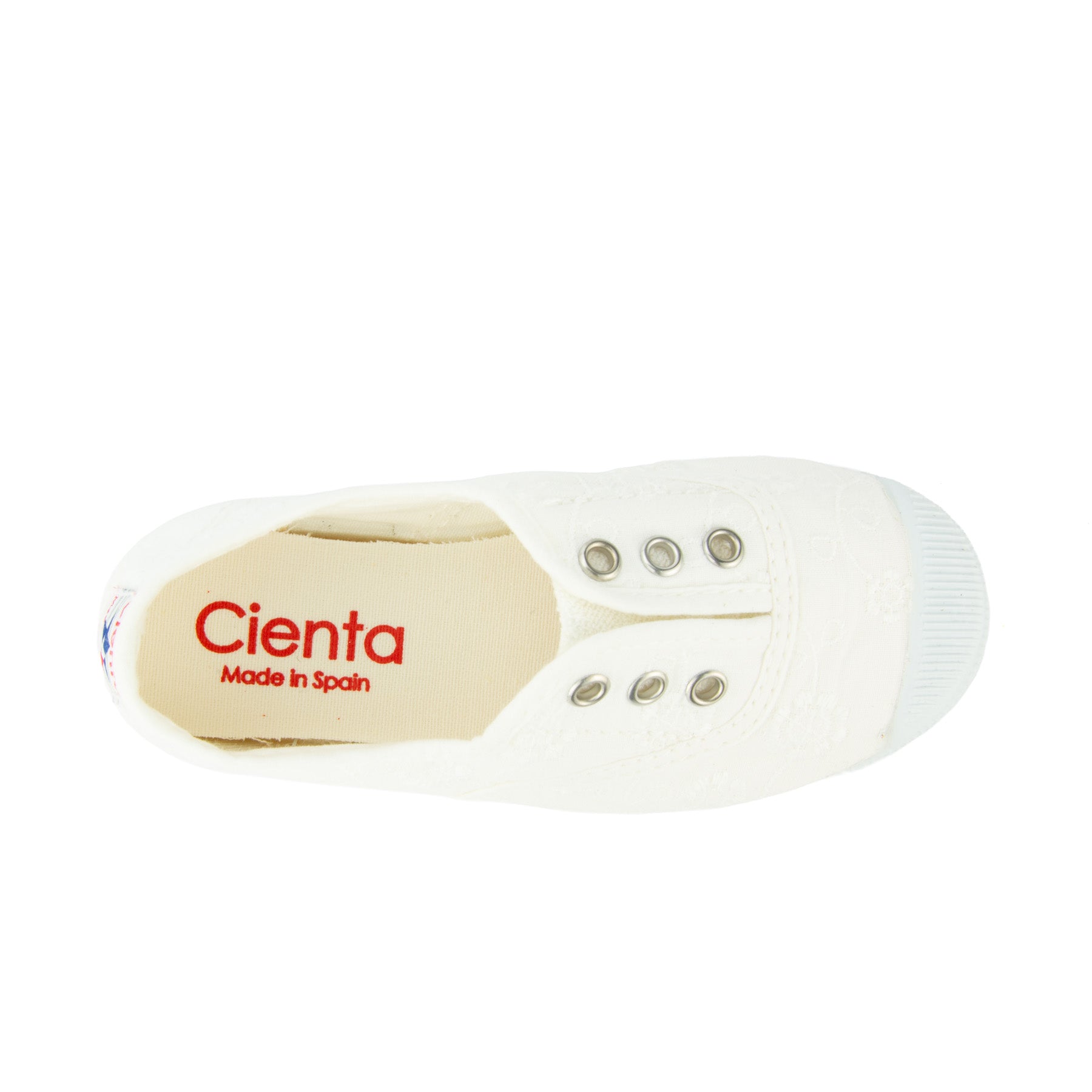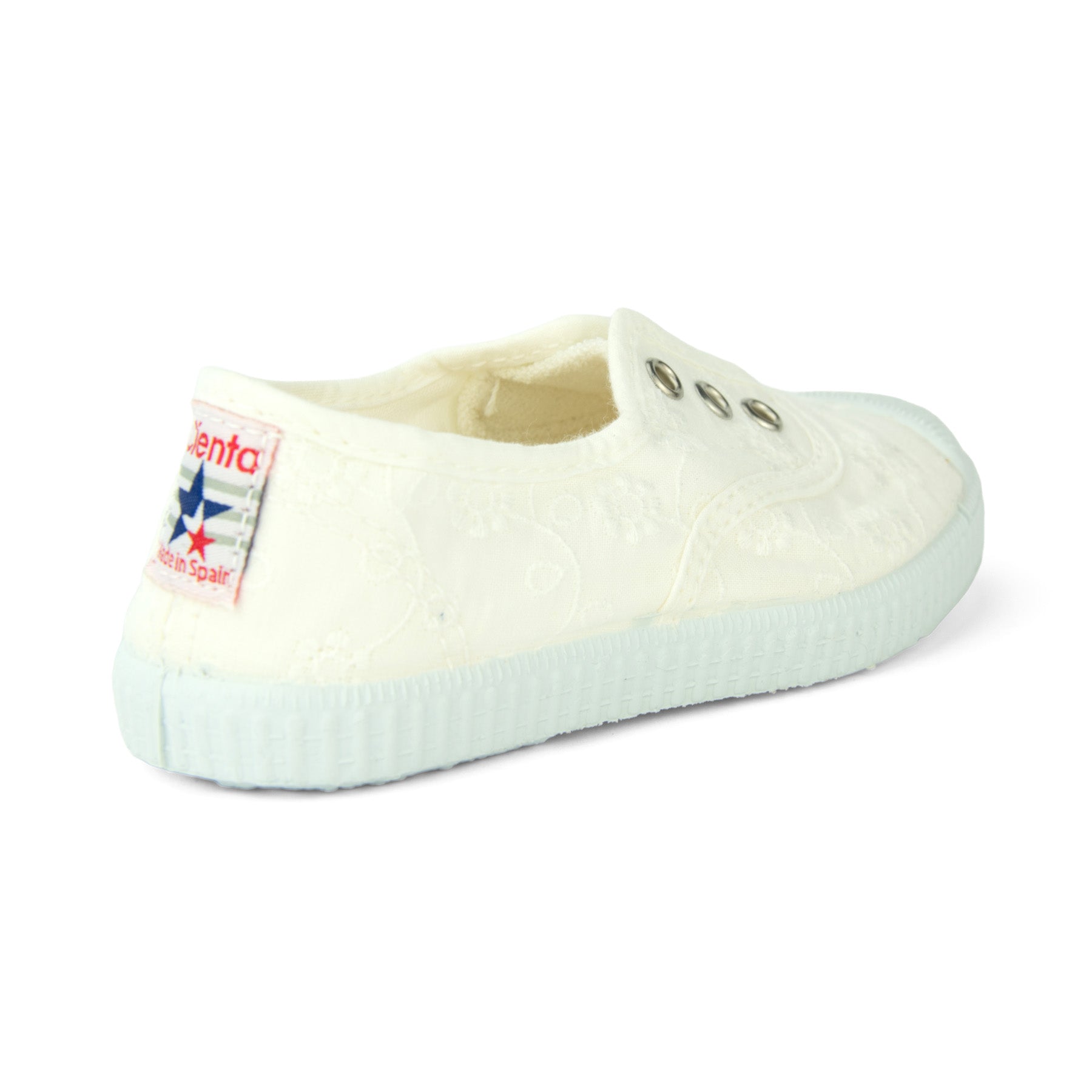 Classic girls' slip-ons from Cienta Shoes in white. Made with 100% organic cotton upper and natural rubber outsole, these shoes feature embroidered upper for classic look. Lightweight and flexible, with cushioned insole, these shoes are comfortable to wear anytime of the day. Hand or machine wash in cold water, max. 30ºC.
