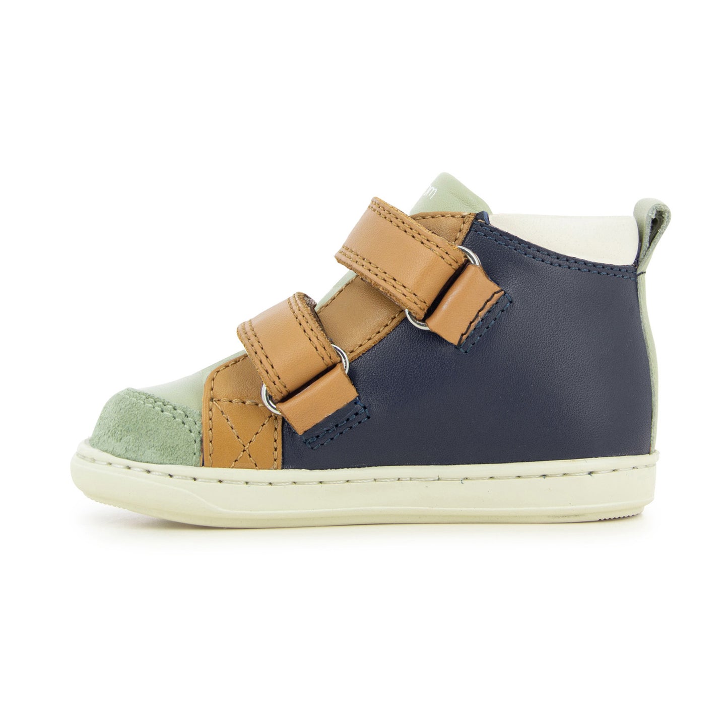 Shoo Pom Bouba New Scratch shoes in Navy showcase a sporty mix of navy smooth leather, tan overlays and sage suede toe that captures classic French style with a playful twist. The premium full-grain leather upper surrounds little feet in breathable comfort, while a padded collar and cushioned insole offer gentle support for first adventures. Two wide hook-and-loop straps make securing the perfect fit quick and fuss-free, and the lightweight rubber sole flexes naturally to encourage confident strides on any surface. Every stitch reflects Shoo Pom’s dedication to superior materials, child-safe construction and lasting good looks. Free delivery in Singapore for orders over $79.