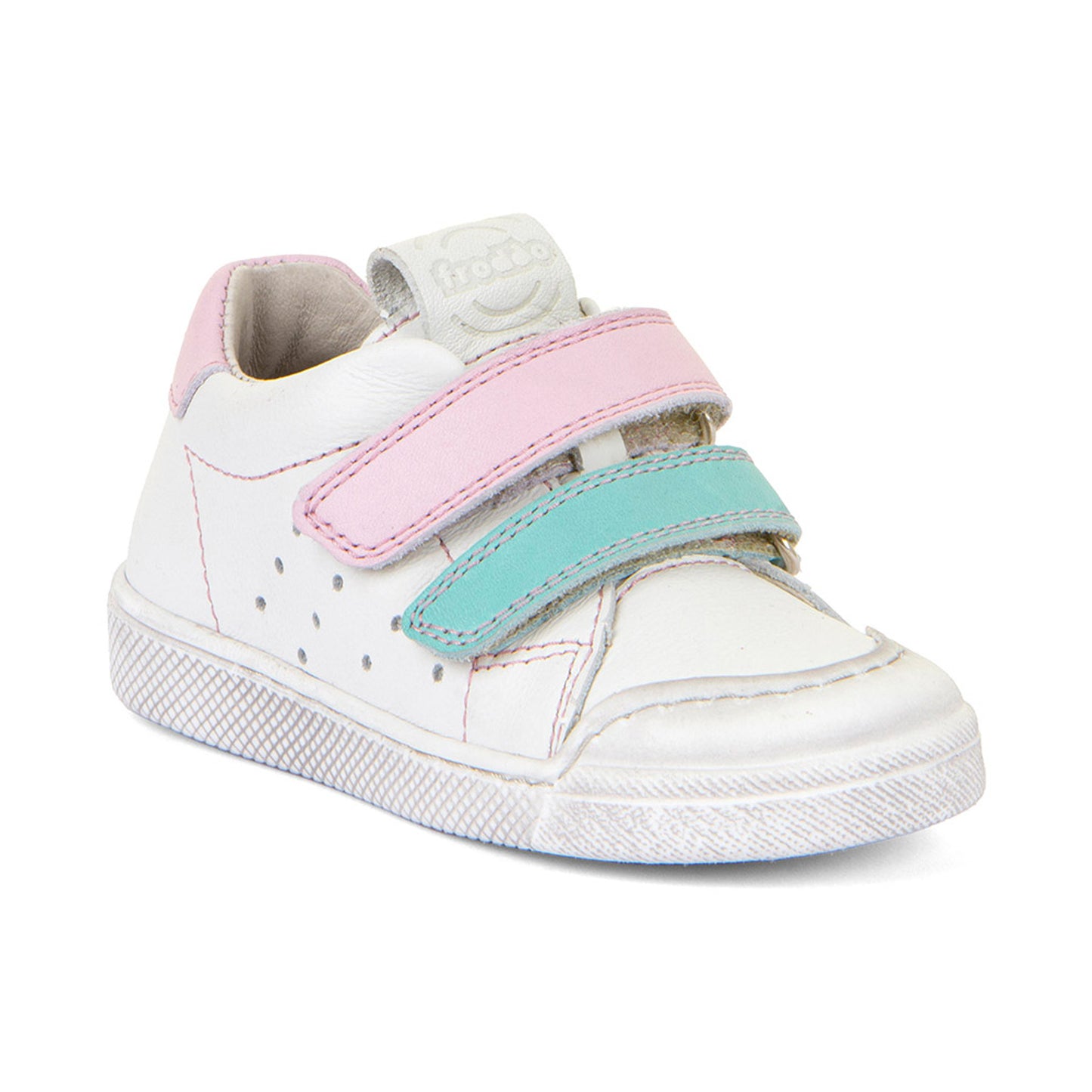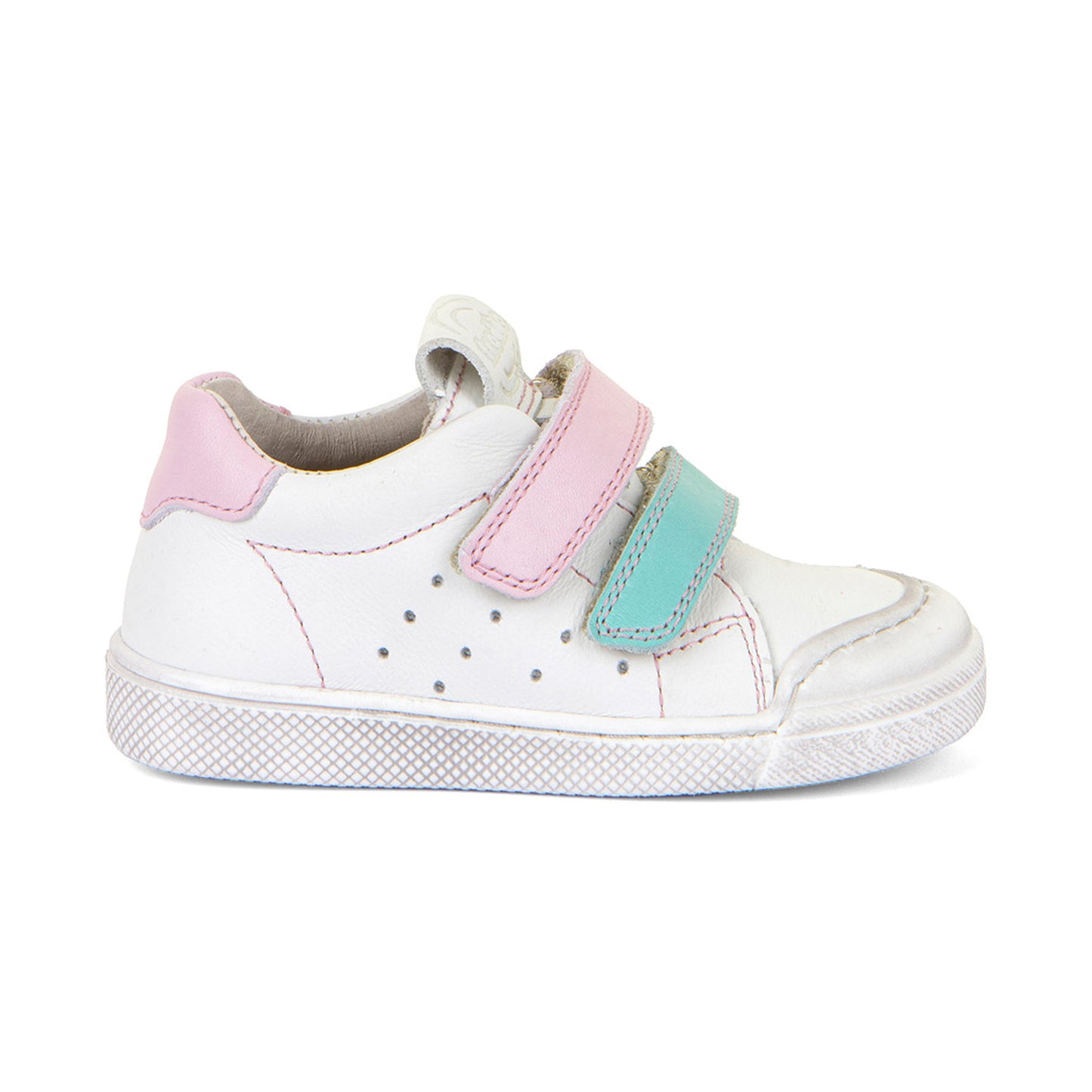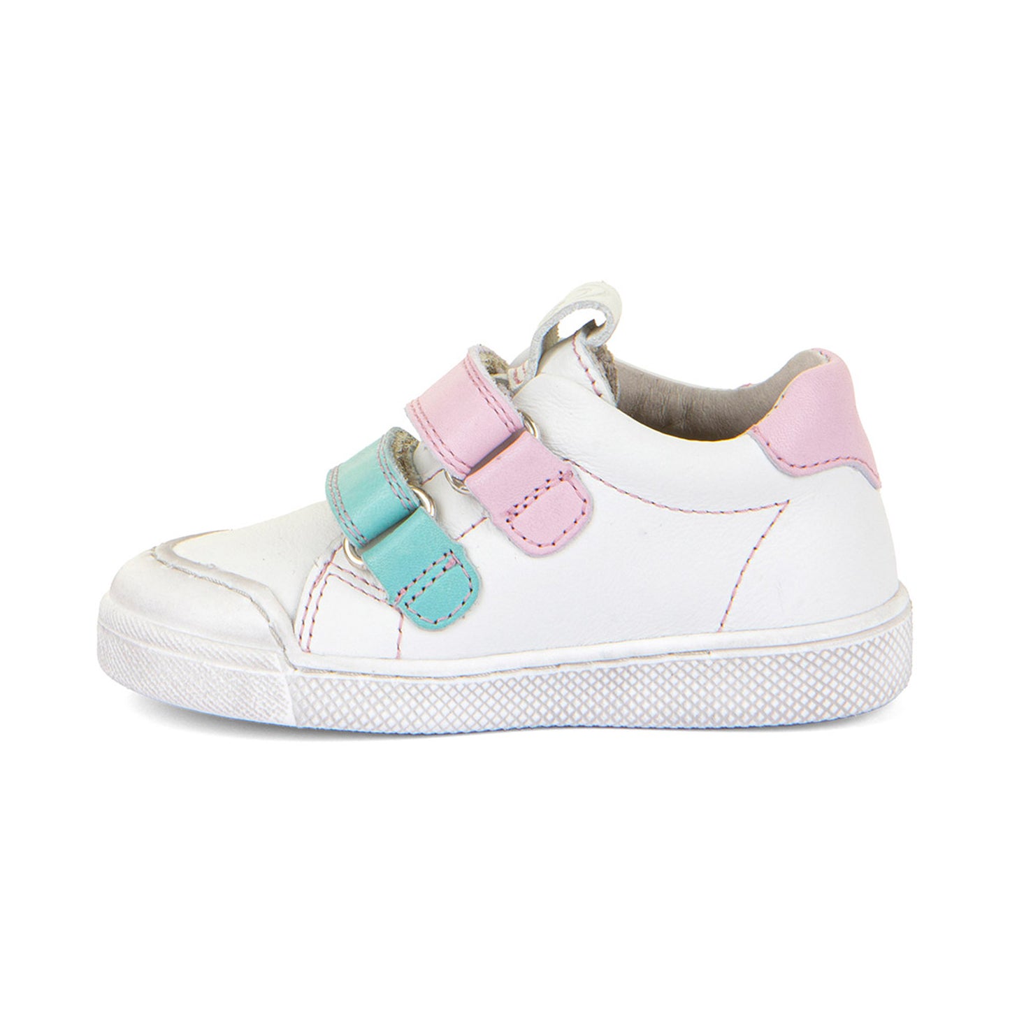 Bring fresh pastel charm to her wardrobe with Froddo Rosario girls’ sneakers in crisp White and Pink leather. Two colour-blocked Velcro straps, in blush pink and mint green, let you fine-tune the fit while adding playful style. The upper is crafted from premium child-safe leather with tiny perforations that boost airflow and keep active feet cool. Inside, a high-resistance microfiber insole cushions every step and stands up to daily wear. The flexible rubber outsole provides reliable grip on playground surfaces, and a softly padded collar supports growing ankles. Thoughtful stitching and durable materials ensure lasting quality, comfort, and safety for every adventure.