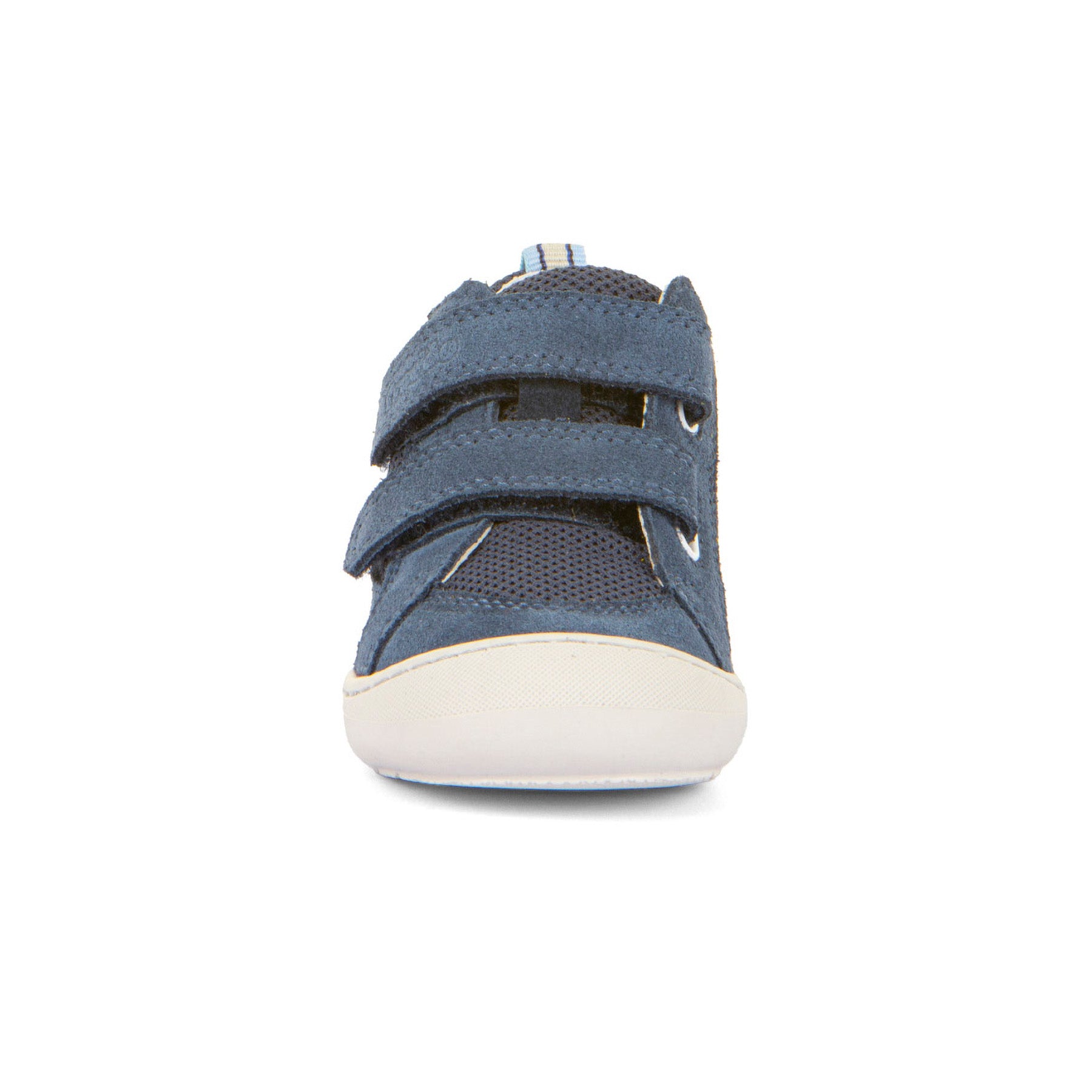 Froddo Ollie Fun in Denim is a premium toddler shoe designed for everyday comfort, protection, and easy wear. Made with water repellent suede and breathable mesh, this sporty style helps keep little feet comfortable through active days while offering a lightweight feel. The denim blue upper gives it a versatile look that pairs easily with casual outfits, and the dual velcro straps make it simple to put on and adjust. Inside, the high resistance microfiber insole provides lasting comfort, while the SMILE insole with activated charcoal helps fight odour naturally. A reinforced toe cap adds extra protection for busy little walkers, and the fit is especially suitable for medium to narrow feet.