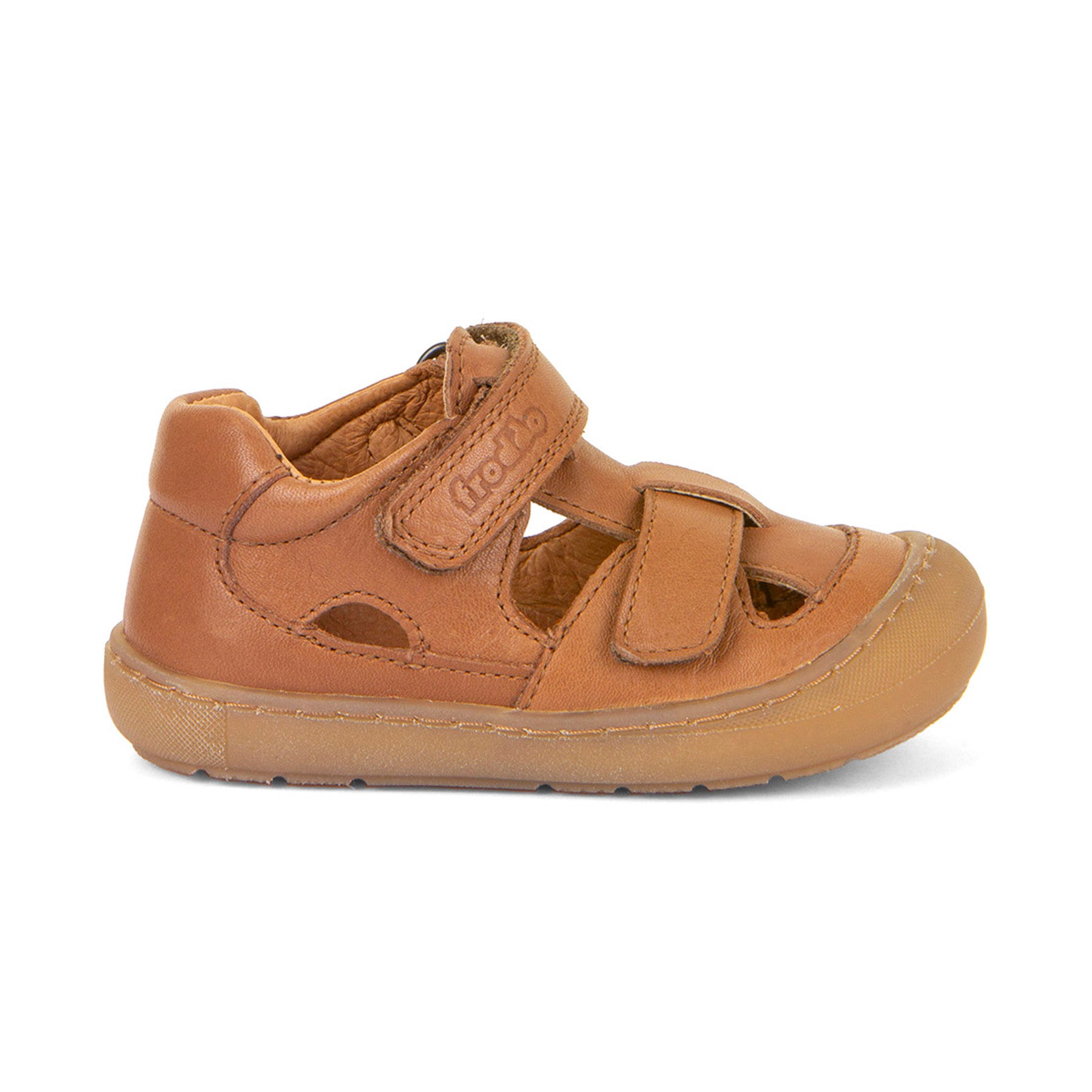 Equip busy toddlers with Froddo Ollie Sandals in stylish Brown leather, combining airy comfort with sturdy protection. The closed-toe front shields little toes, while side cutouts keep feet cool on sunny days. Two easy Velcro straps adjust for a snug fit, and Froddo’s SMILE insole, infused with activated charcoal, helps control odour naturally. A softly padded collar supports growing ankles, and the flexible rubber sole delivers reliable grip for playground adventures. Crafted from premium child-safe materials with durable stitching, these sandals prioritise quality, comfort, and everyday safety.