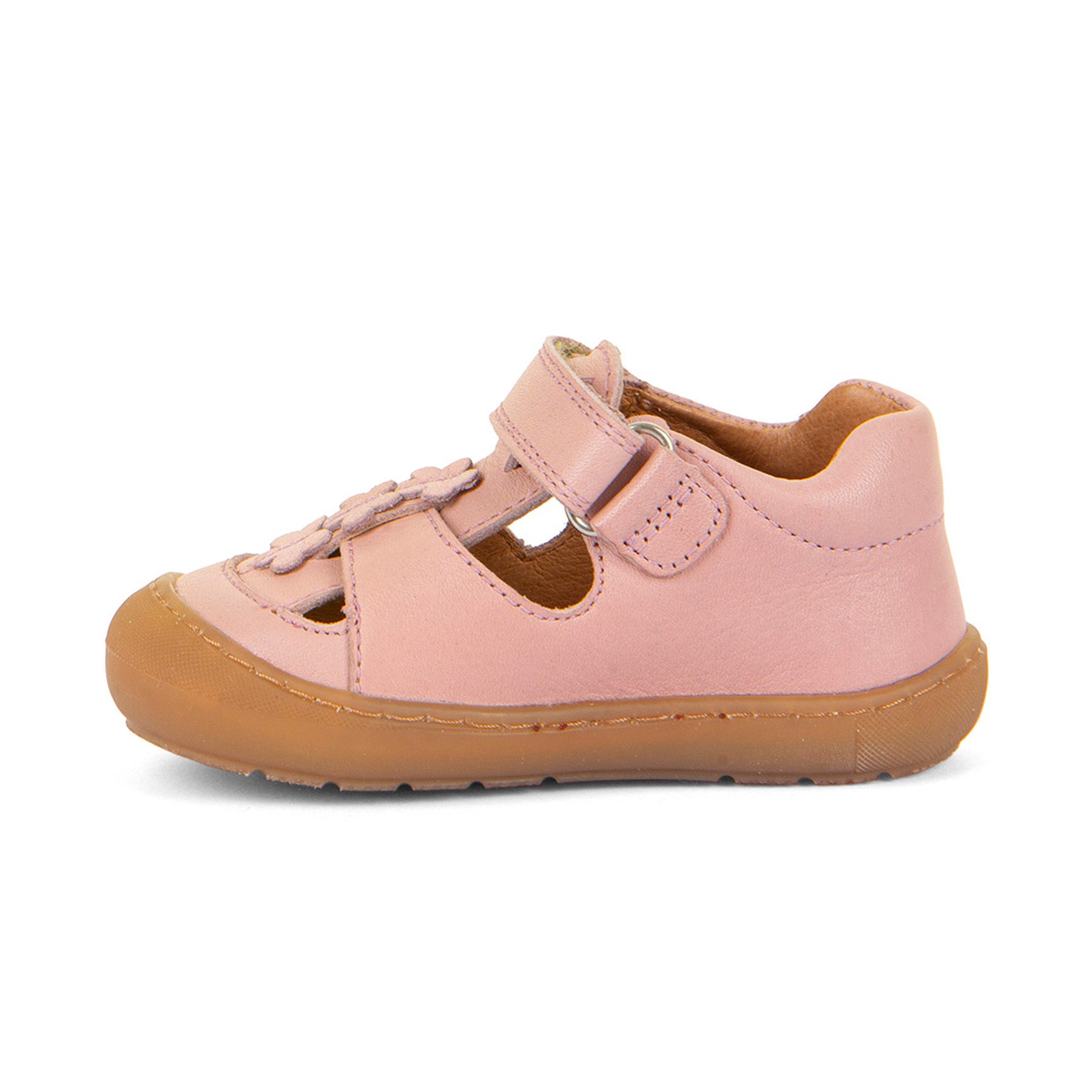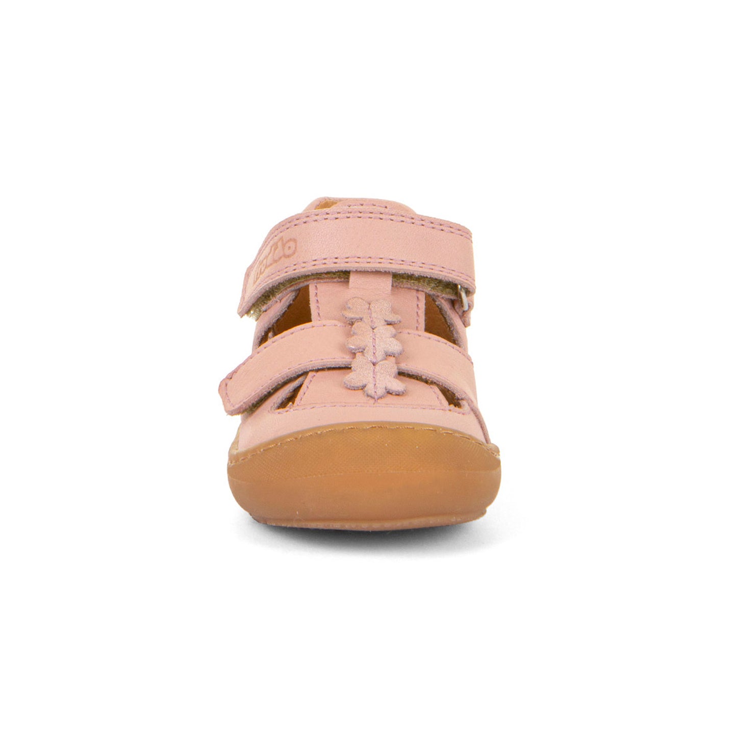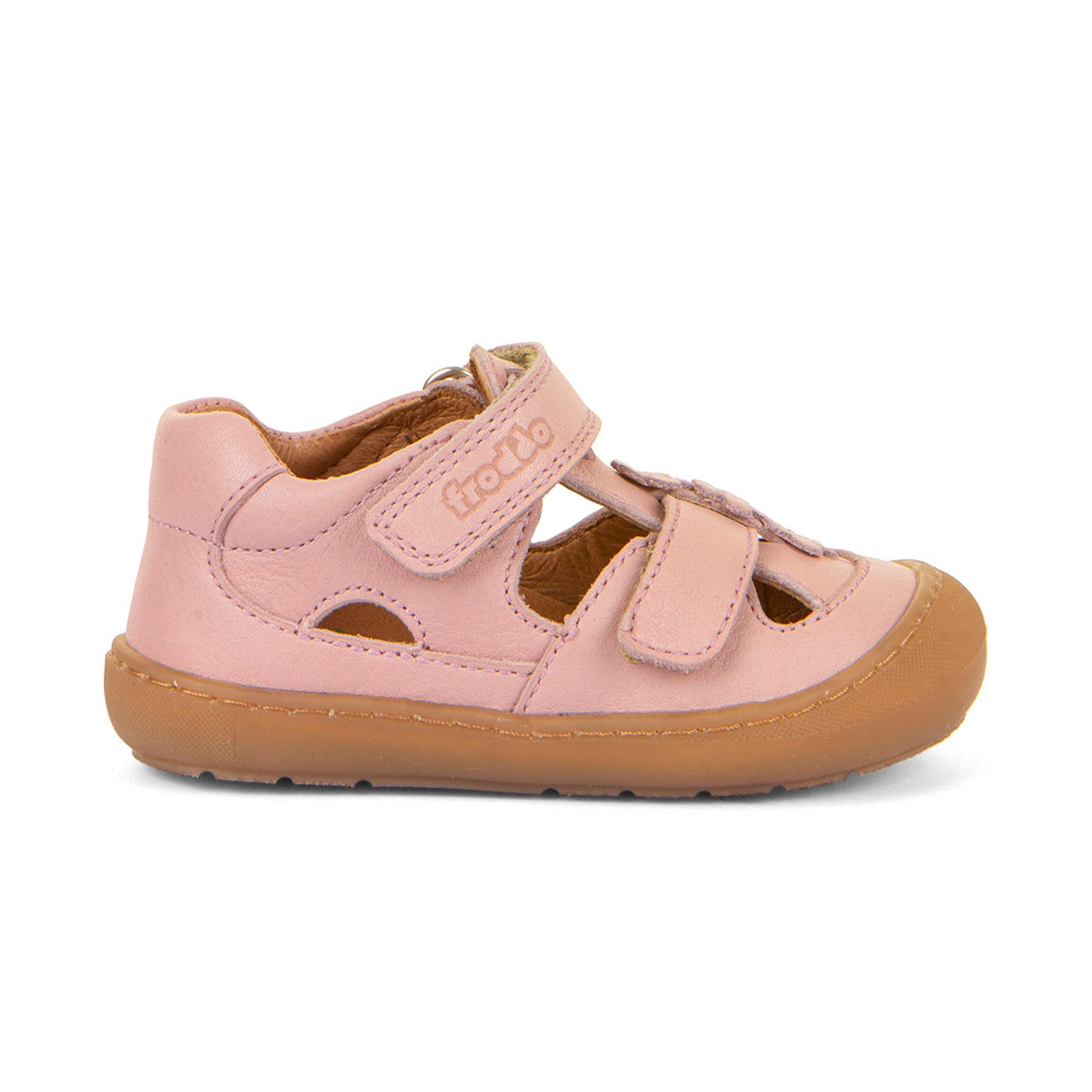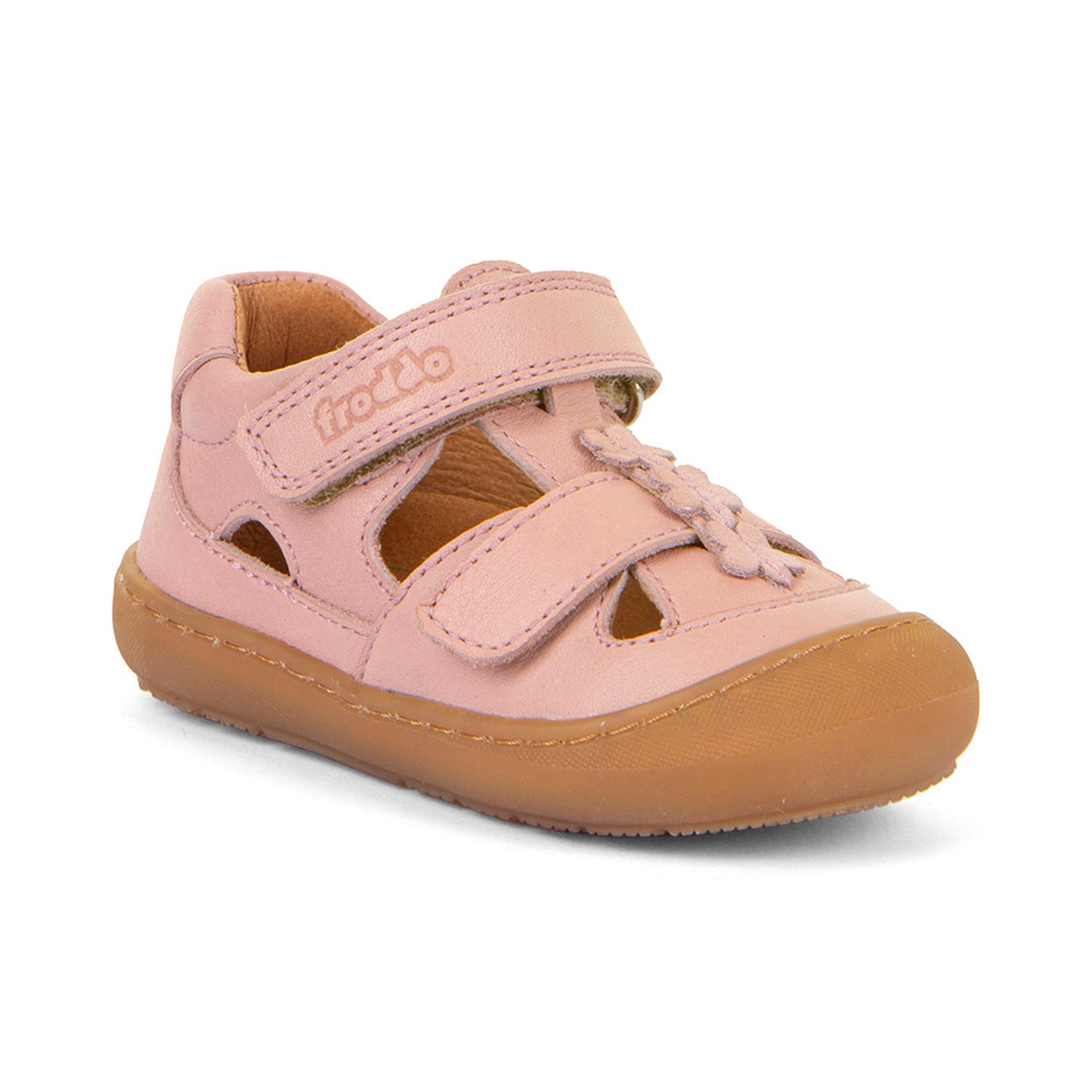Let little explorers enjoy sunny days in comfort with Froddo Ollie Sandals in sweet Pink leather. The protective closed toe shields delicate toes, while airy side cutouts keep feet cool all day. Two simple Velcro straps allow quick, secure adjustments, and Froddo’s odour-controlling SMILE insole with activated charcoal keeps shoes fresh. A cushioned collar supports growing ankles and the flexible rubber sole offers dependable grip on playground surfaces. Crafted from high-grade child-safe materials with reinforced stitching, these sandals deliver trusted quality, comfort, and safety for every step.