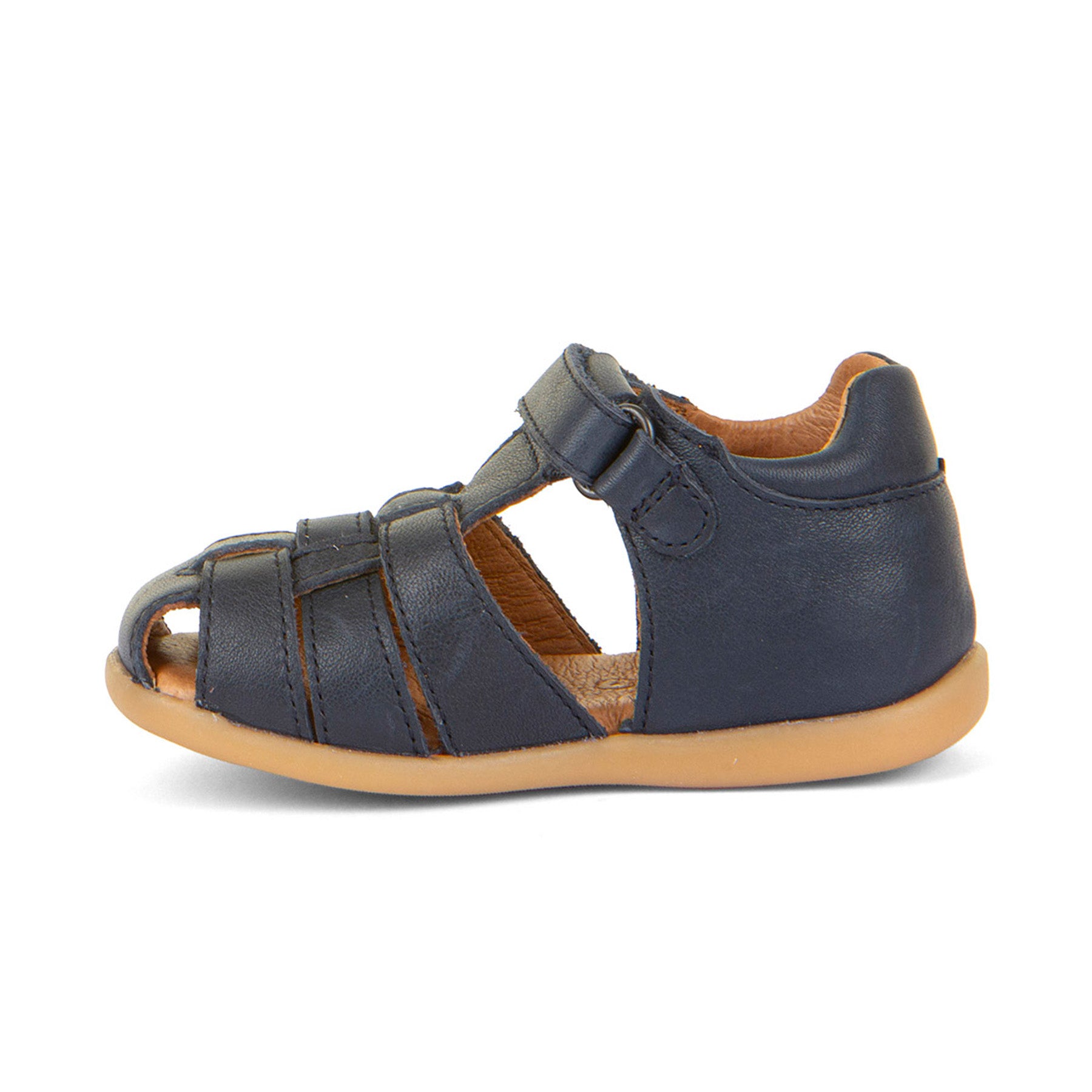 Give your toddler dependable summer comfort with Froddo Dany fisherman sandals in classic Dark Blue leather. Soft full-grain straps and a protective closed heel cradle growing feet, while side vents keep them cool on warm days. The cushioned leather footbed offers all-day comfort, and the newly upgraded super flexible outsole bends easily for natural, steady steps. A single Velcro strap secures the fit in seconds, and reinforced stitching with child-safe materials ensures lasting quality and reliable safety on every adventure.
