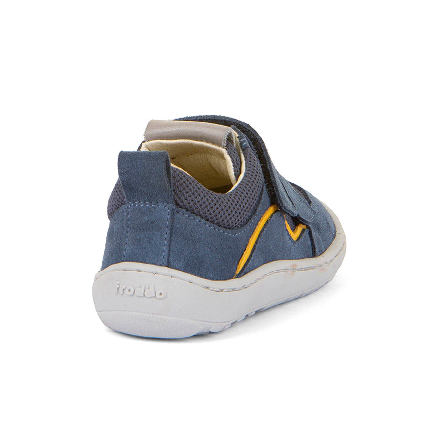 Designed for active little explorers, the Froddo Base barefoot sneakers in Denim are perfect for boys who love adventure. Crafted from premium natural leather combined with breathable mesh, these shoes are water-repellent, keeping young feet dry and comfortable in all conditions. Featuring an extra-grip outsole with zero heel drop and exceptional flexibility in all directions, these sneakers promote healthy, natural foot movement. Easy-to-adjust velcro straps ensure a snug, secure fit, so kids can play safely and confidently. Prioritize quality, comfort, and safety with Froddo Base barefoot sneakers.