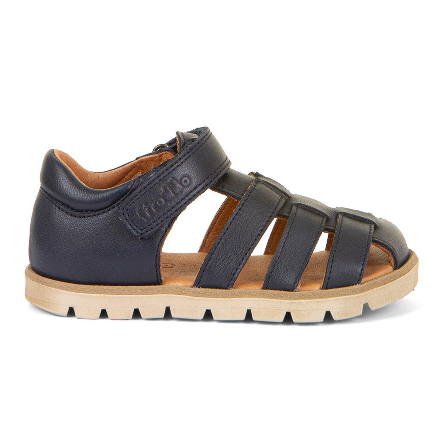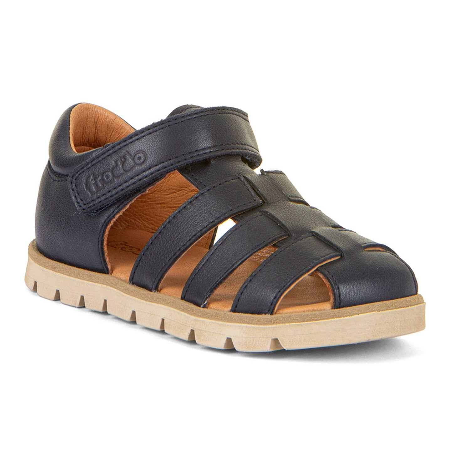 Ensure your boy steps into comfort and safety with Froddo Keko sandals in timeless Dark Blue. These stylish covered-toe sandals are meticulously crafted from soft, natural leather that gently protects young feet while offering breathability. Designed for active play, they feature an extra-flexible, non-slip outsole paired with a cushioned footbed to guarantee stability, comfort, and healthy foot development. Adjustable velcro straps provide a secure and customizable fit, making Froddo Keko sandals the perfect choice for quality, durability, and peace of mind.
