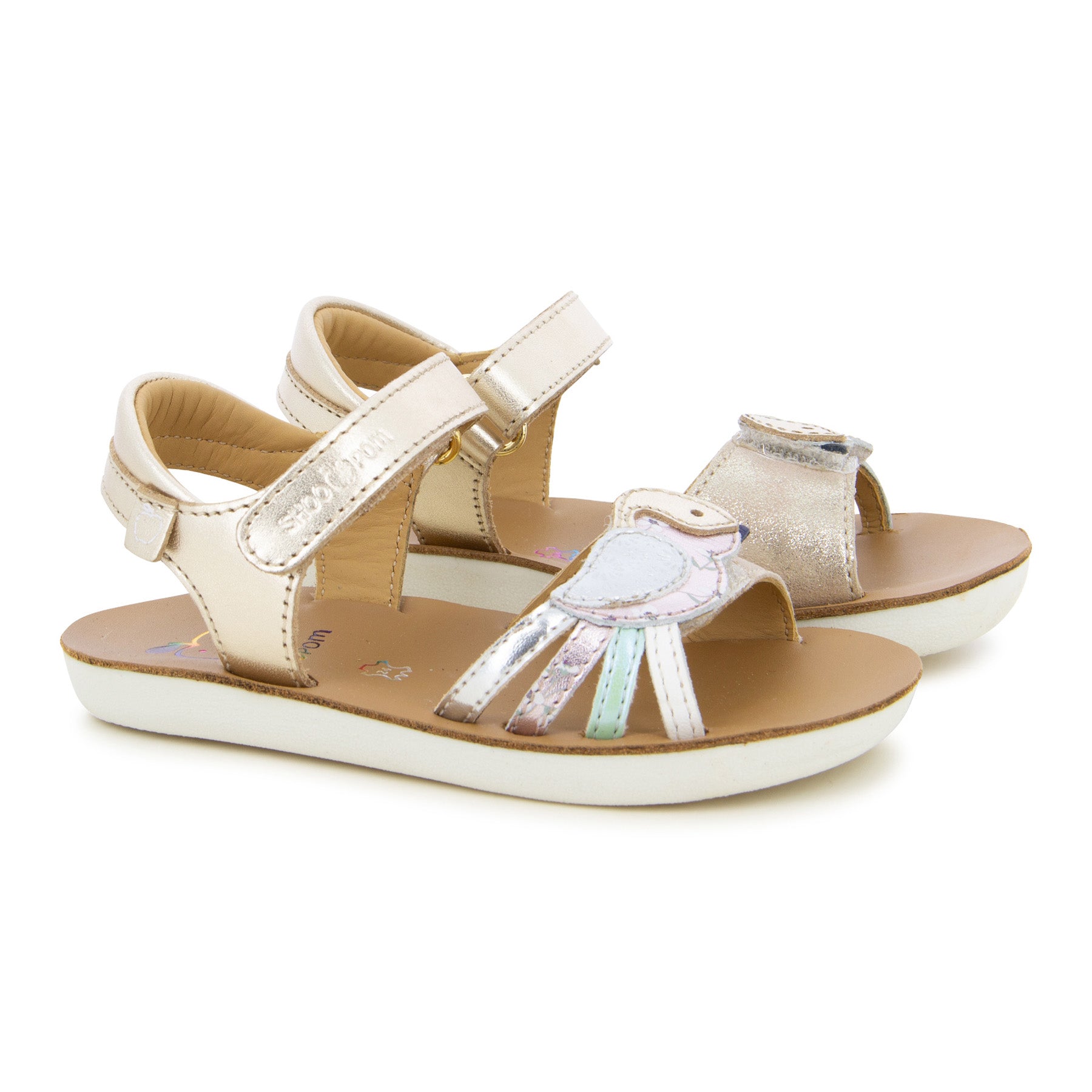 Shoo Pom Goa Piou sandals in Platine blend Parisian flair with premium craftsmanship, showcasing shimmering metallic leather and a sweet bird applique that adds charming personality to summer outfits. The soft full-leather upper hugs little feet in breathable comfort, while a smooth leather footbed cushions every step on playdates or special occasions. An easy velcro ankle strap encourages independent dressing and ensures a snug fit, and the lightweight, flexible sole supports steady traction on every adventure. Thoughtfully designed and meticulously stitched, these sandals reflect Shoo Pom’s commitment to quality materials, stylish detail and child-friendly safety.