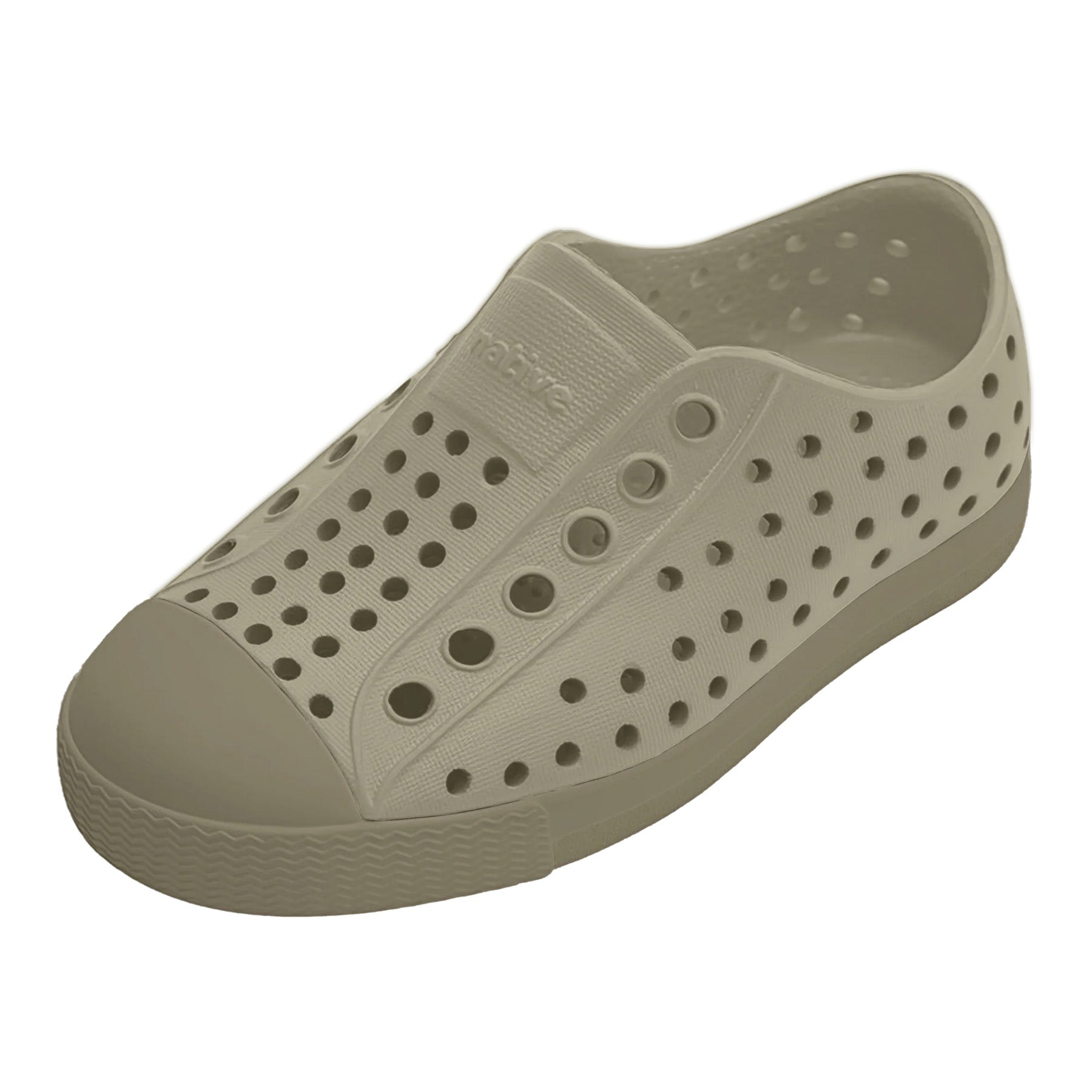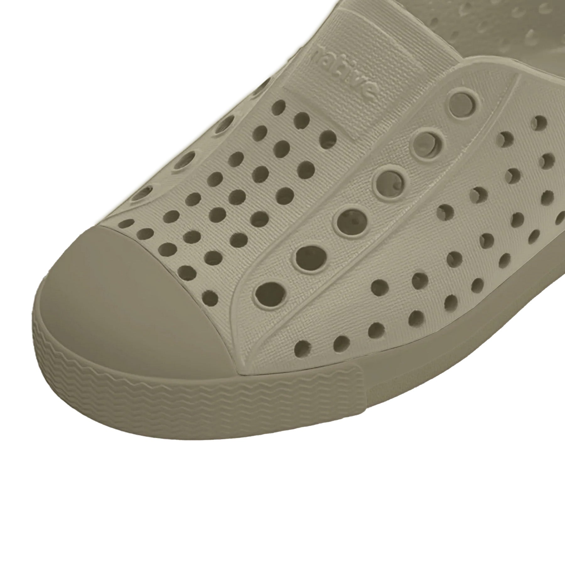 Native Jefferson in Elm Green gives everyday outfits a clean, earthy look while delivering the comfort parents trust. Built from ultra-lightweight EVA, this water-friendly classic keeps little feet cool with breathable perforations and a soft, cushioned feel for all-day play. The odor-resistant, hand-washable construction makes cleanup quick, and the tonal protective toe cap adds durability. With an easy slip-on design, kids can get out the door fast for park days, school, and weekend adventures.