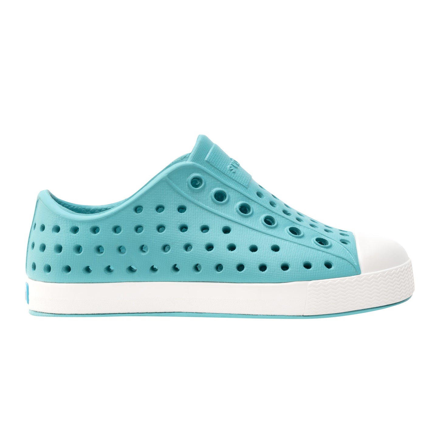 The Native Jefferson Children's Shoes in Pool Blue combine practical design with kid-friendly features. Made from lightweight EVA material, these shoes provide excellent shock absorption and all-day comfort for active children. The breathable construction helps keep feet cool, while built-in odor-resistant technology keeps them fresh. Easy to clean – just wash and go. The Jefferson's simple slip-on design and durable build make them ideal for everyday wear, from playground adventures to casual outings. These versatile shoes offer the perfect blend of comfort, function, and style for growing feet.