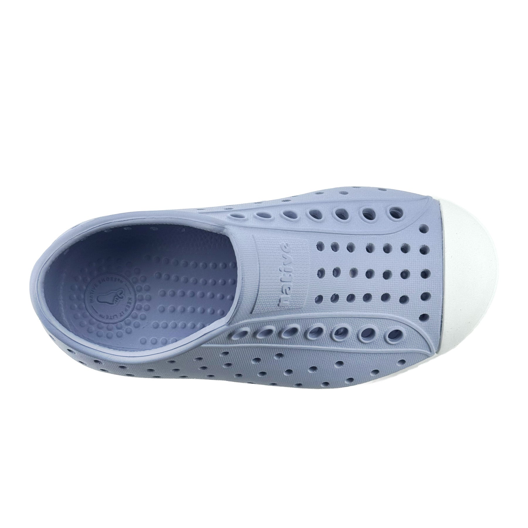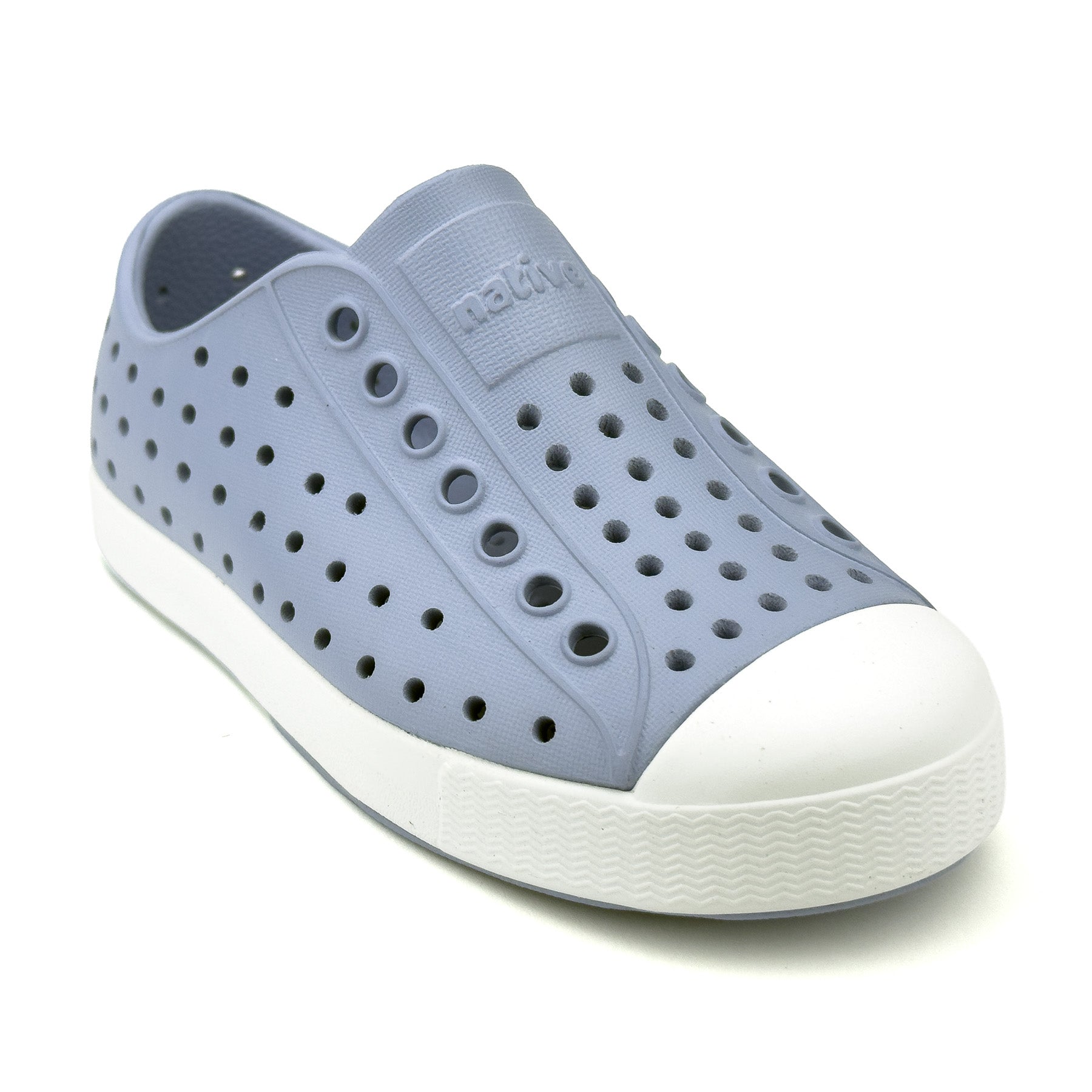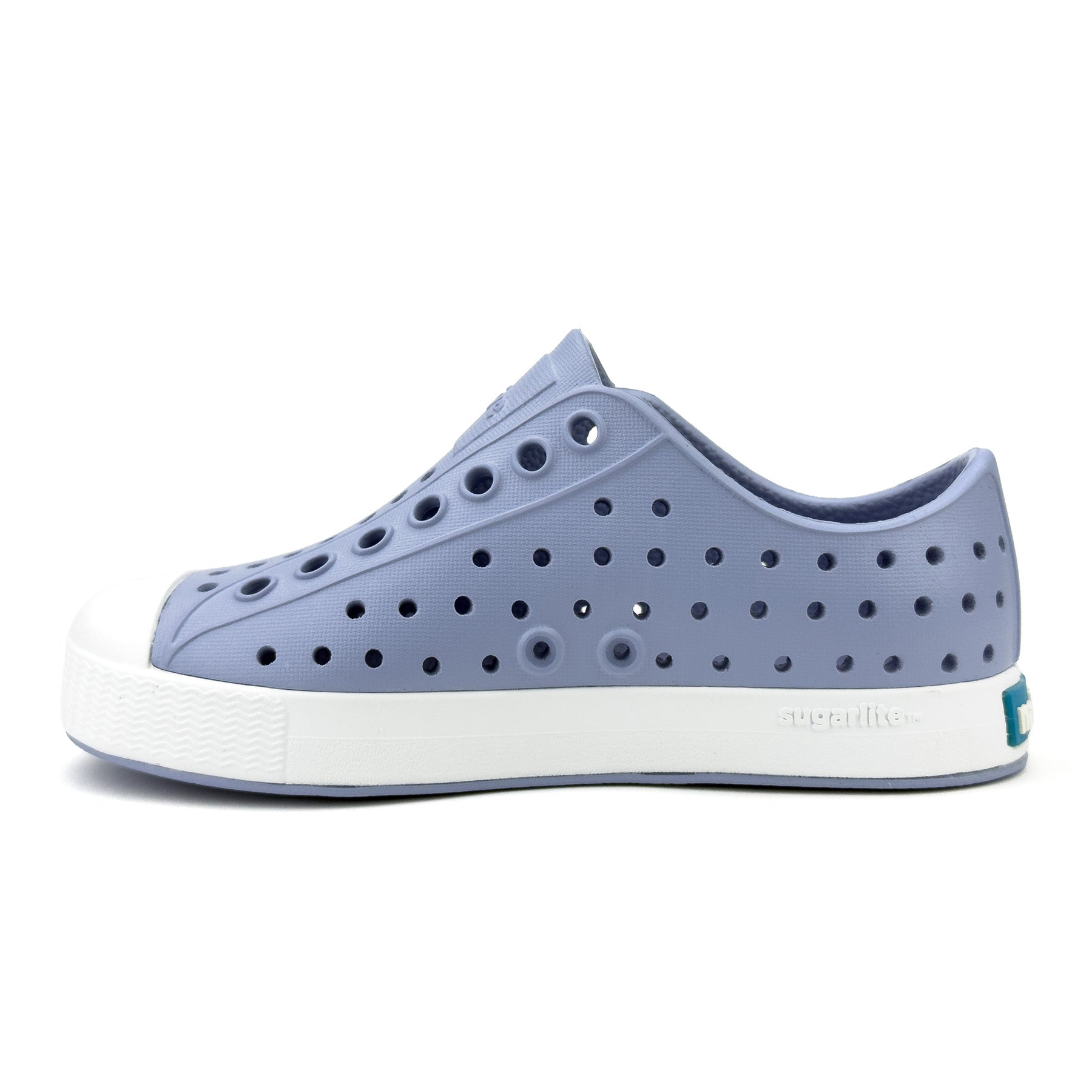 Native Jefferson in Skyway Blue delivers the timeless Jefferson look in a calm, versatile blue that works for everyday wear. Made with Sugarlite™, Native’s sugarcane-based EVA, this lightweight and water-friendly shoe keeps little feet comfortable and cool with breathable perforations and a softly cushioned feel. It is odor-resistant and easy to rinse clean, making it ideal for school days, playground fun, and weekend outings. The classic slip-on design and durable white toe cap help kids move freely and parents worry less.