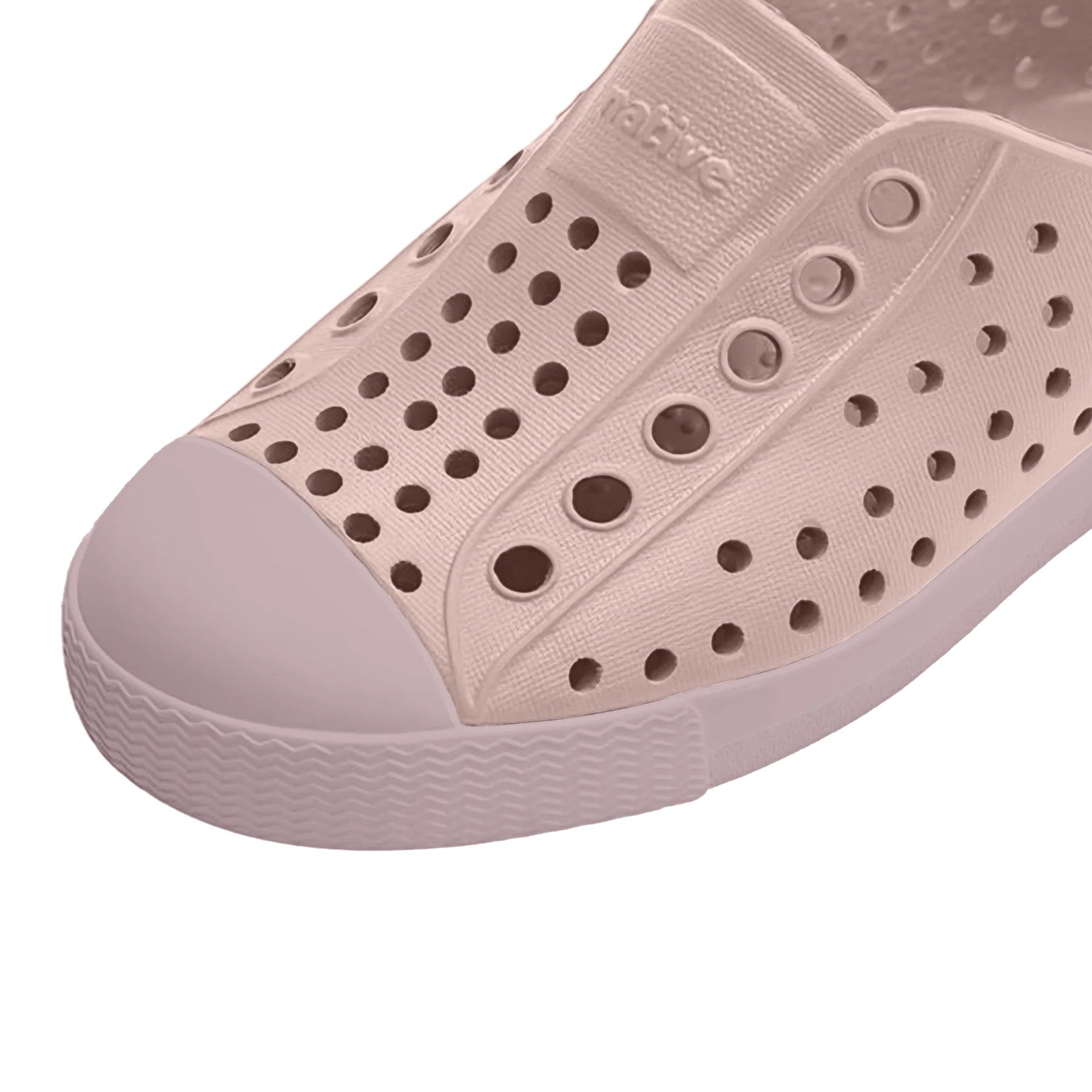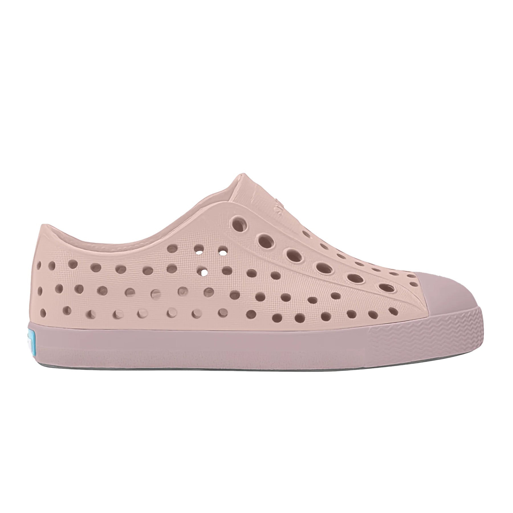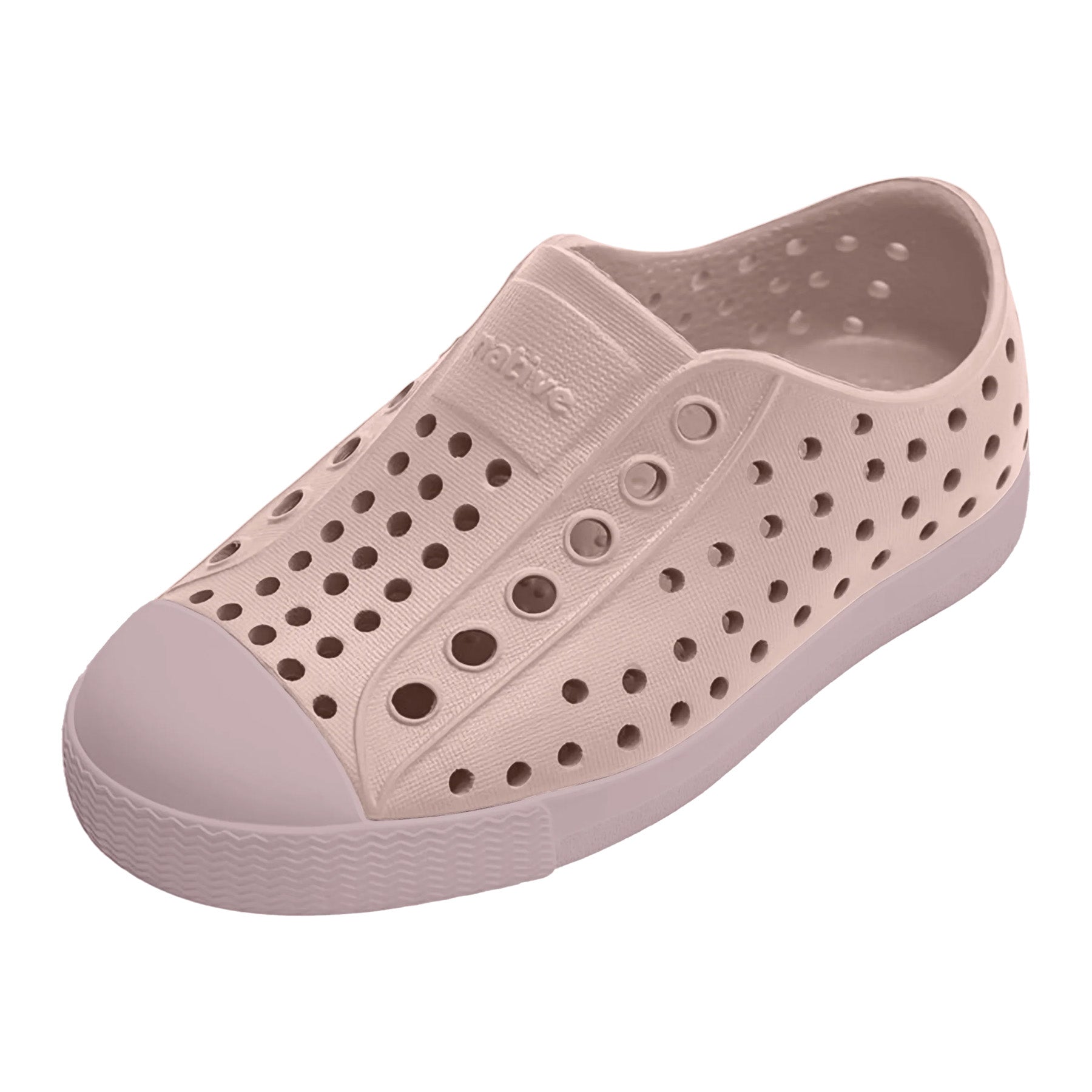 Native Jefferson in Dust Pink pairs a soft, everyday-friendly hue with the classic comfort families love. Made from ultra-lightweight EVA, this water-friendly shoe keeps little feet cool with breathable perforations and a cushioned feel that’s ready for school, park days, and splashy weekends. It is odor-resistant and easy to rinse clean, while the tonal protective toe cap adds durability. The slip-on design means kids can get out the door quickly without fuss.